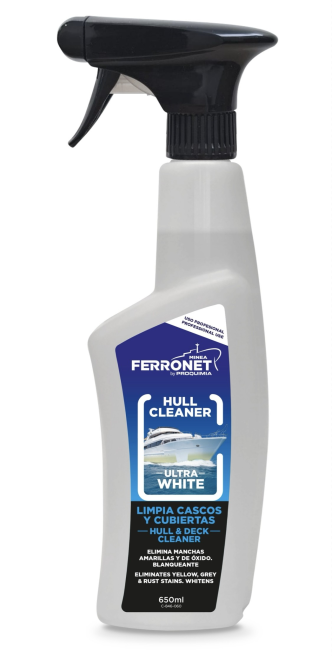Limpiador blanqueante de cascos y cubiertas de barcos. Elimina instantáneamente la suciedad incrustada y las manchas amarillas, óxidos y algas de la línea de flotación. Diseñado especialmente para blanquear el gelcoat, superficies de fibra de vidrio y poliéster.